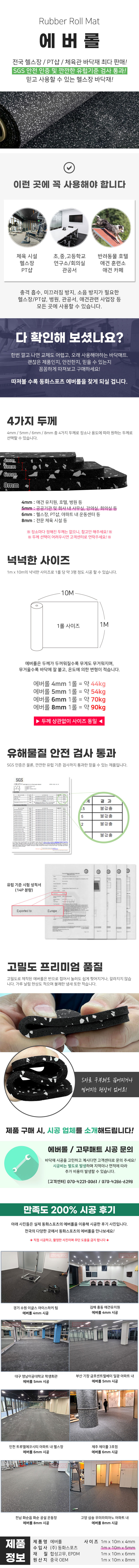 - HOME > 헬스 > 요가 / 조각 / 매트류 > 매트 > 동화스포츠 - 에버롤 1m x 10m x 5mm EPMD 15% 헬스장 매트