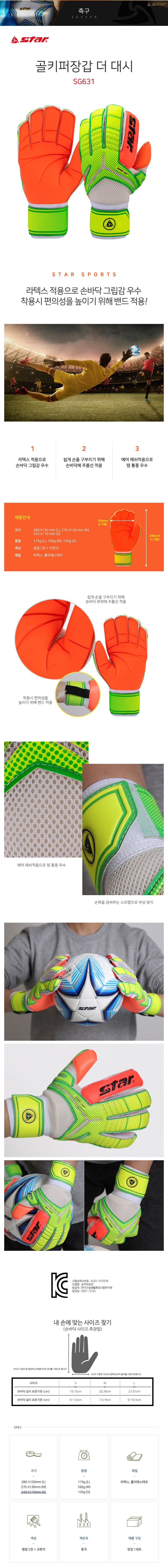 - HOME > 축구 > 장갑 / GK 장갑 > 스타 > 스타 - 골키퍼장갑 더 대시 SG631 S