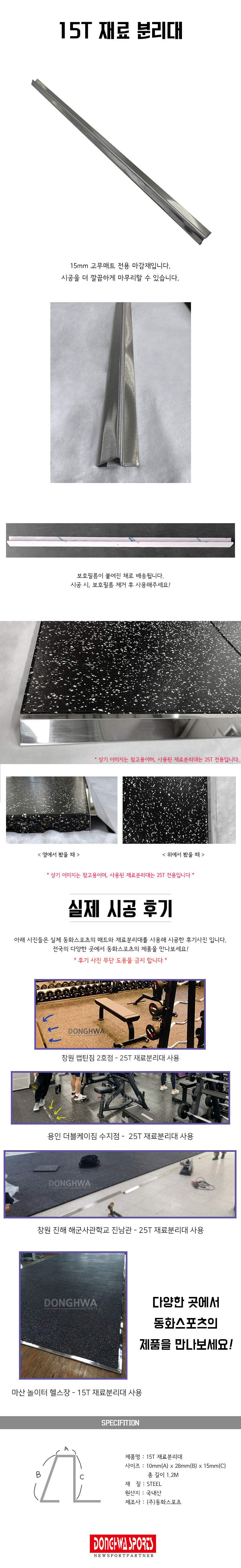HOME > 헬스 > 기타용품 > 바닥매트 > 동화스포츠 - 일자형 스텐재료분리대 15T 테두리마감재