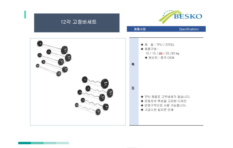 - HOME > 헬스 > 아령 / 원판 / 바 / 봉 > 각종 바 > 베스코 - 12각 고정컬바 20kg