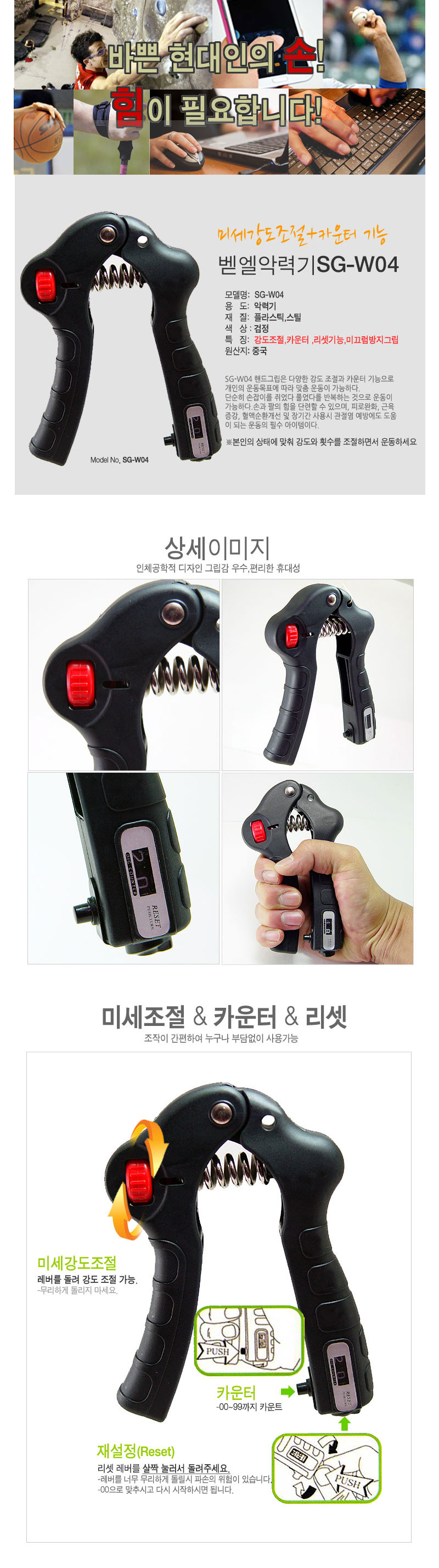 벧엘 - SG-W04 악력기 강도조절 카운터 리셋 미끄럼방지