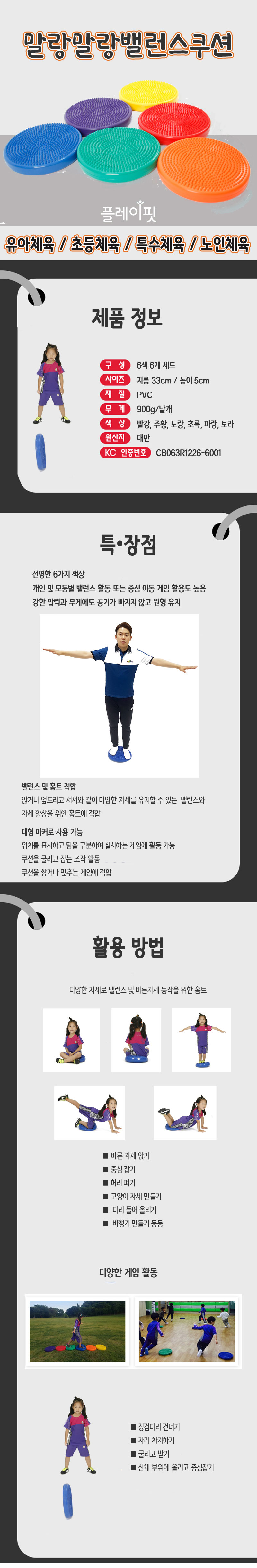 플레이핏 - 말랑말랑 밸런스쿠션 6색 6개세트 30cm