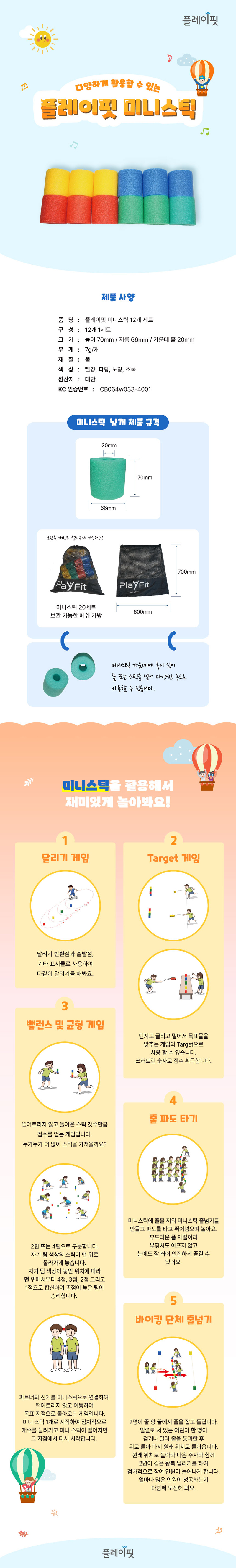 플레이핏 - 미니스틱 12개1세트 높이70mm 지름66mm
