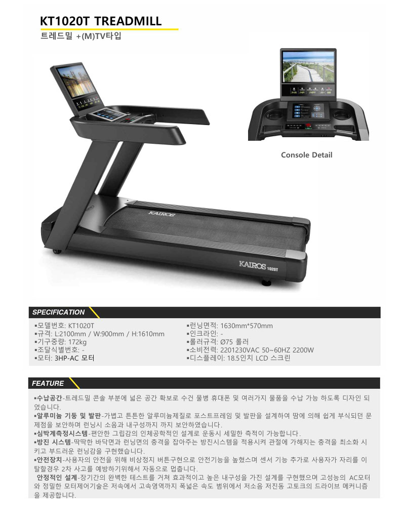 카이로스 - 트레드밀 KT1020-T TV 러닝머신