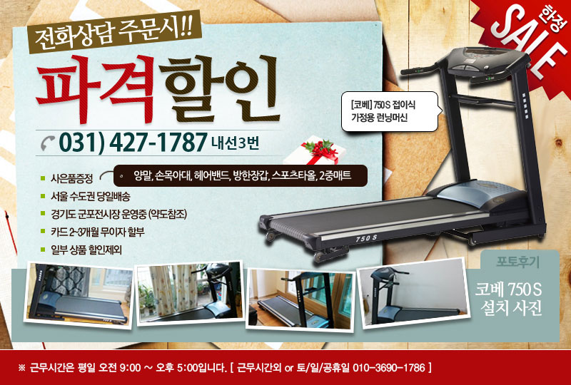 - 코베 - 750S 접이식 가정용 런닝머신/런닝머신 무료설치배송 8개 2중 매트 사은품 증정 서울/수도권 당일 배송/코베750S