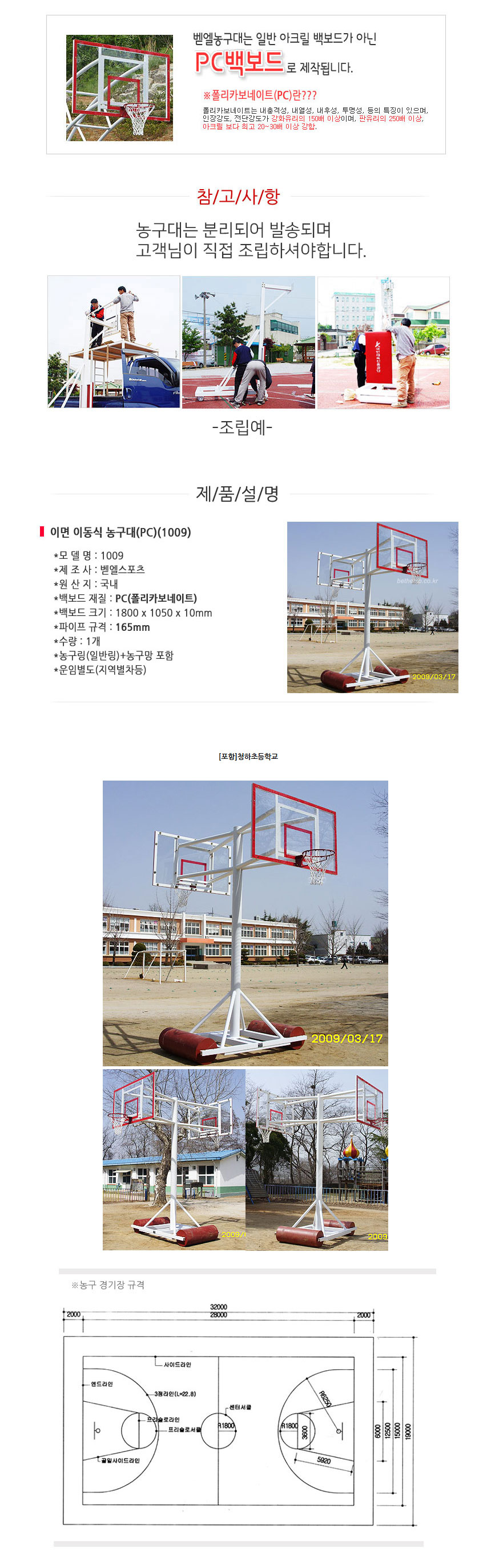 - HOME > 농구 > 농구대 / 골대 / 링망 > 농구골대 > 벧엘 - 이면 농구대(PC)(1009) 이동식