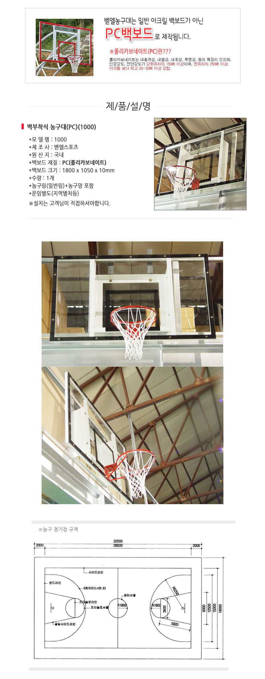 - HOME > 농구 > 농구대 / 골대 / 링망 > 농구골대 > 벧엘 - 벽부착식 농구대(1000)