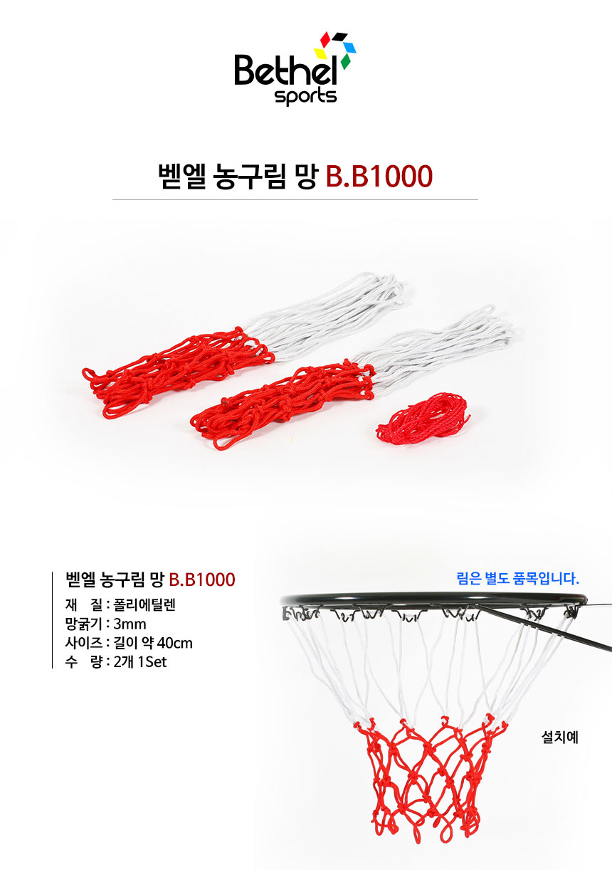 - HOME > 농구 > 농구대 / 골대 / 링망 > 농구링 / 링망 > 벧엘 - 농구링망 BB1000(1조)