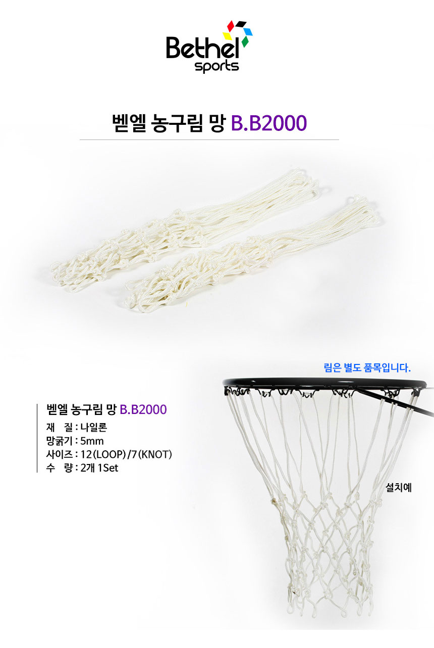 - HOME > 농구 > 농구대 / 골대 / 링망 > 농구링 / 링망 > 벧엘 - 농구링망 BB2000(1조)